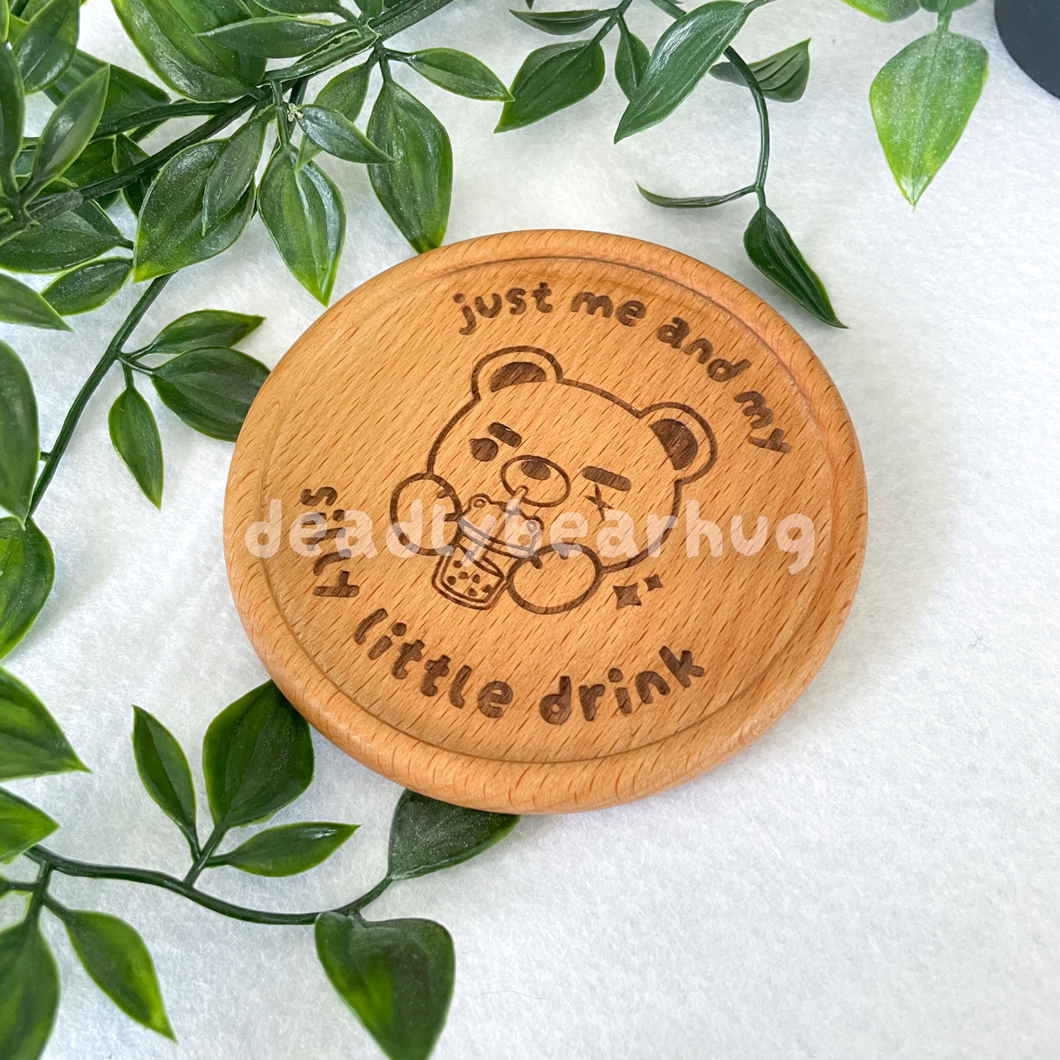 "Silly Little Drink" deadlybearhug Bear Wooden Beech Coaster for Home